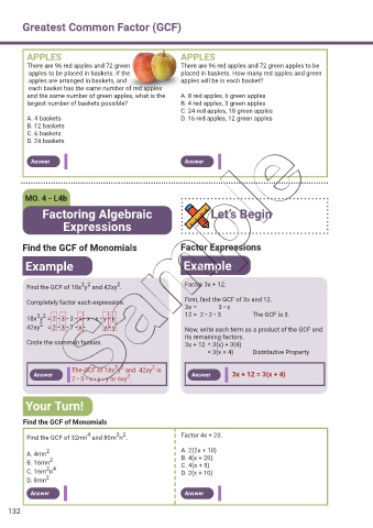 18x y = 2 • 3 • 3 • x • x • x • y • y 12 = 2 • 2 • 3 The GCF is 3.