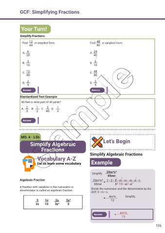 Algebraic Fraction 20m³n³ = 2 • 2 • 5 • m • m • m • n • n