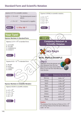 Express Numbers in Scientif c Notation Earth 1.55 x 10 8