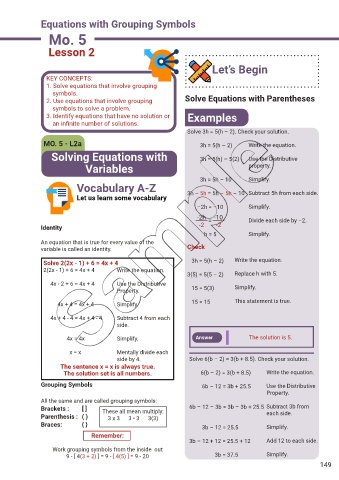 2. Use equations that involve grouping Solve Equations with Parentheses