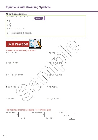 5. 2(c - 3) = 76 10. 7(x - 2) = 5(x + 2)
