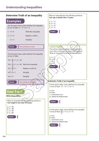 Determine Truth of an Inequality Write an inequality for the following sentence.