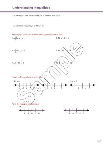 11. a < 6 12. t ≥ -2 13. d ≤ 3
