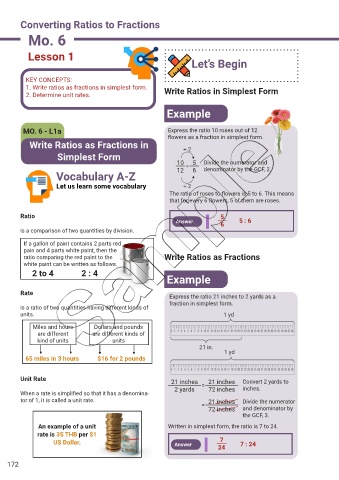 MO. 6 - L1a Express the ratio 10 roses out of 12