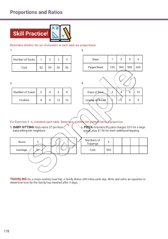 For Exercises 5–6, complete each table. Determine whether the pattern forms a proportion
