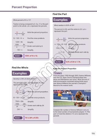 The percent is 28%, and the part is 70. Let n was Serena Williams the women’s champion?