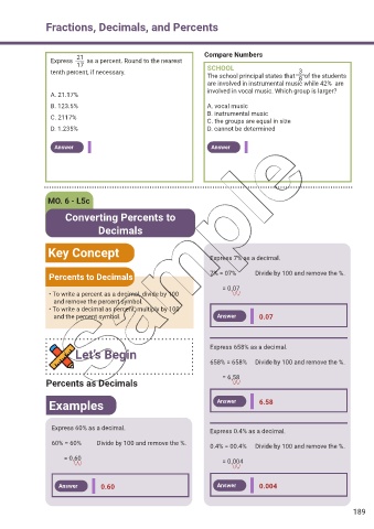 Fractions, Decimals, and Percents