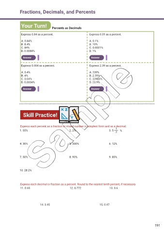 Express each decimal or fraction as a percent. Round to the nearest tenth percent, if necessary