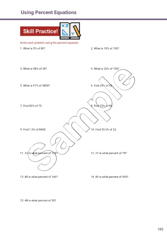 11. 23 is what percent of 115? 12. 27 is what percent of 75?