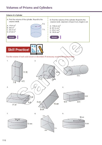 A. Find the volume of the cylinder. Round to the B. Find the volume of the cylinder. Round to the