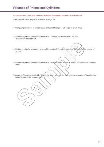 14. Find the height of a cylinder with a radius of 8.4 inches and a volume of 3546.7 in . Round to the nearest
