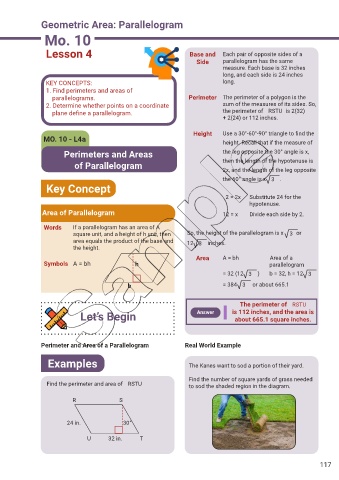 Find the perimeter and area of ▱RSTU to sod the shaded region in the diagram.