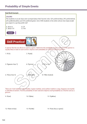 The students in an art class were surveyed about their favorite color. 32% preferred blue, 29% preferred red,