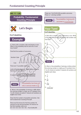 Find Probabilities A. Bob rolls a number cube and tosses a coin. What