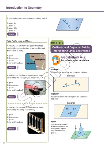 modeled by a colored dot on a map used to mark Collinear and Coplanar Points,