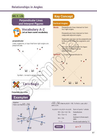 Algebra If KO ⊥ HM, then m∠KJH = 90. To f nd x, use ∠KJI