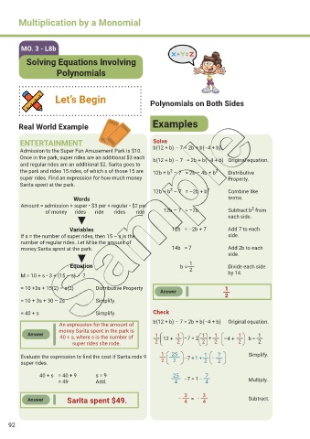 Once in the park, super rides are an additional $3 each b(12 + b) – 7 = 2b + b(–4 + b) Original equation.