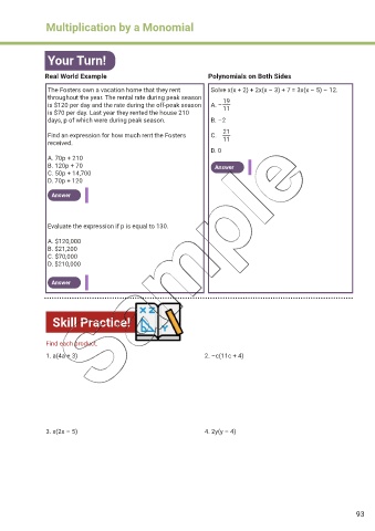 The Fosters own a vacation home that they rent Solve x(x + 2) + 2x(x – 3) + 7 = 3x(x – 5) – 12.