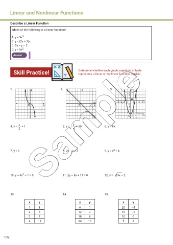 Skill Practice! Determine whether each graph, equation, or table