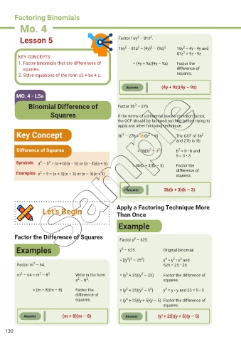 Key Concept 3b – 27b = 3b(b – 9) The GCF of 3b