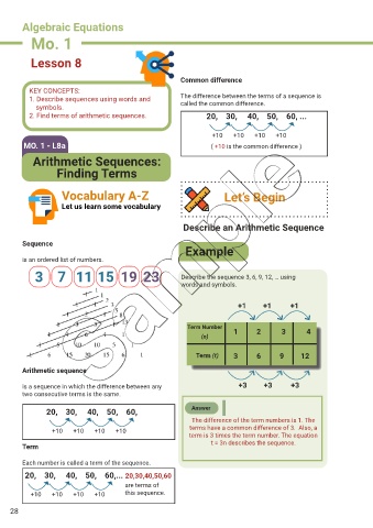 1. Describe sequences using words and The difference between the terms of a sequence is