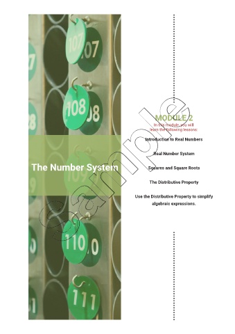 MODULE 2 In this module, you will learn the following lessons: Introduction to Real Numbers Real Number System The Number System Squares and Square Roots The Distributive Property Use the Distributive Property to simplify algebraic expressions.