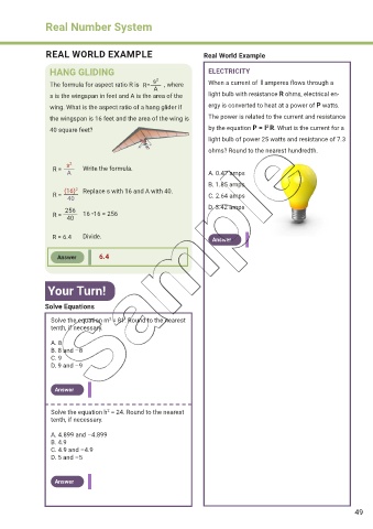 s is the wingspan in feet and A is the area of the light bulb with resistance R ohms, electrical en-