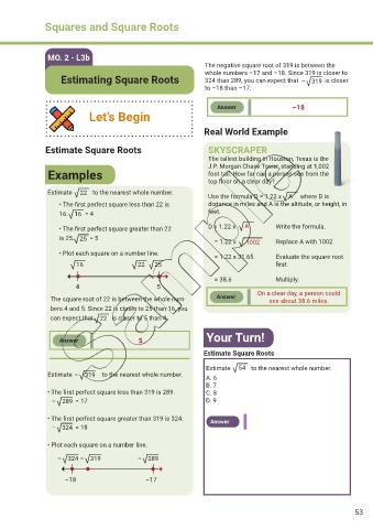 The square root of 22 is between the whole num- Answer see about 38.6 miles.