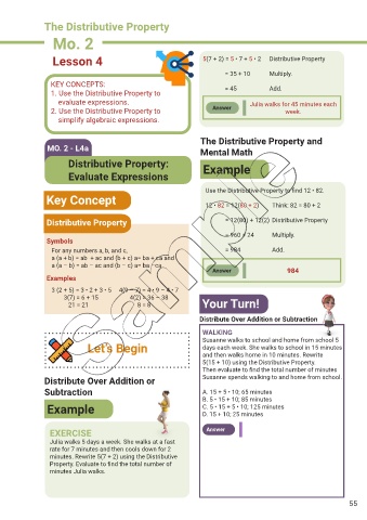 minutes. Rewrite 5(7 + 2) using the Distributive