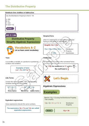 Use the Distributive Property to f nd 6 • 54.