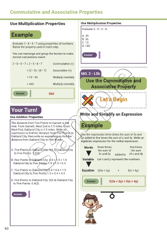 D. Five Points to Oakland City: 3(0.4) Oakland City Answer 3(3x + 2y) + 5(x + 4y)