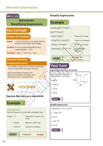 Power of a Product = (8g h ) (2gh ) . Power of a Power