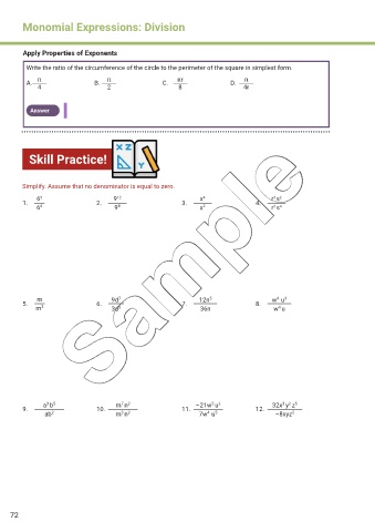 Write the ratio of the circumference of the circle to the perimeter of the square in simplest form.