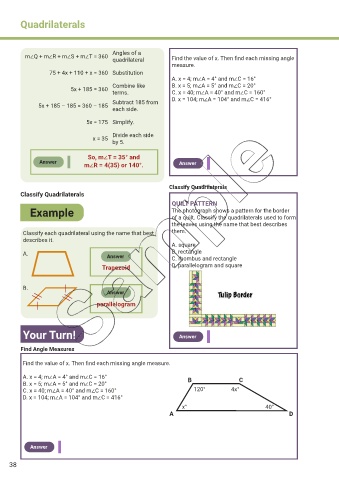 of a quilt. Classify the quadrilaterals used to form