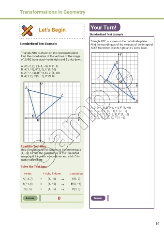 Standardized Test Example Find the coordinates of the vertices of the image of