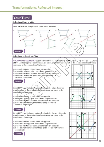 LMPN and its image under reflection in the x-axis. Describe what happens to the coordinates of each vertex