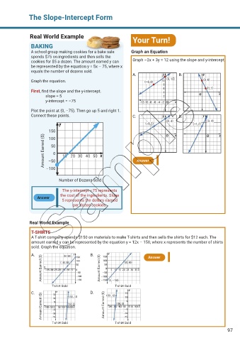 cookies for $5 a dozen. The amount earned y can Graph –2x + 3y = 12 using the slope and y-intercept.