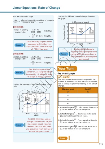 Passports(millions) 8 A. Rate of change is . This means that it costs