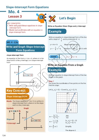 1. Write and graph linear equations in slope- Write an Equation Given Slope and y-Intercept