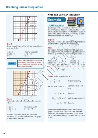 y > 2x +3 Original inequality Let y equal the number of articles that Lee can edit.