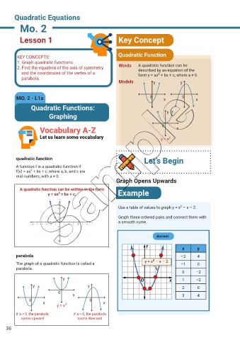 KEY CONCEPTS: Quadratic Function