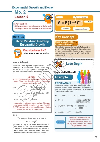 2. Solve problems involving exponential decay. Principal Number of times per year,