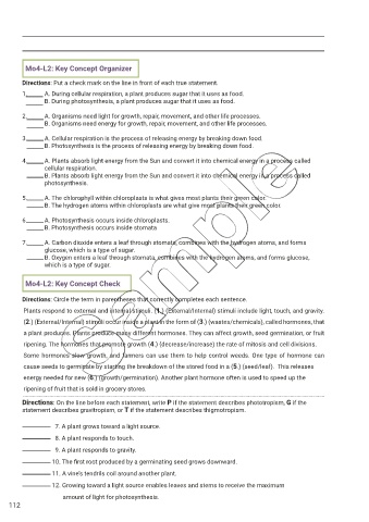 Directions: On the line before each statement, write P if the statement describes phototropism, G if the