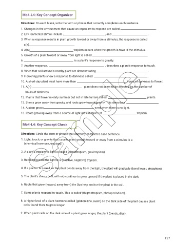 4. A(n) tropism occurs when the growth is toward the stimulus.