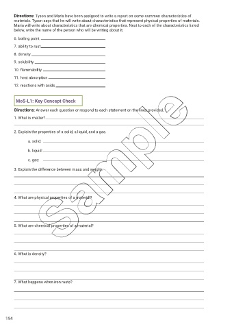 materials. Tyson says that he will write about characteristics that represent physical properties of materials.