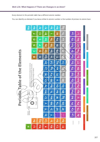 Mo6-L3b: What Happens if There are Changes in an Atom? Every element in the periodic table has a different atomic number. You can identify an element if you know either its atomic number or the number of protons its atoms have. 207