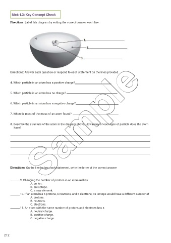 8. Describe the structure of the atom in the diagram above. How many of each type of particle does the atom