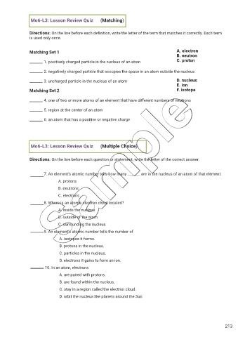3. uncharged particle in the nucleus of an atom D. nucleus