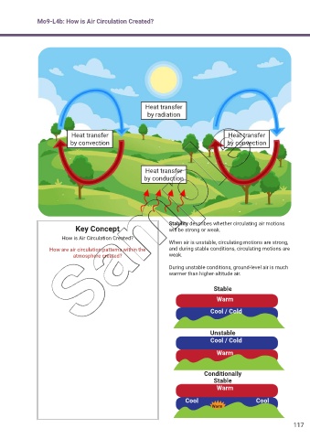 How are air circulation patterns within the and during stable conditions, circulating motions are