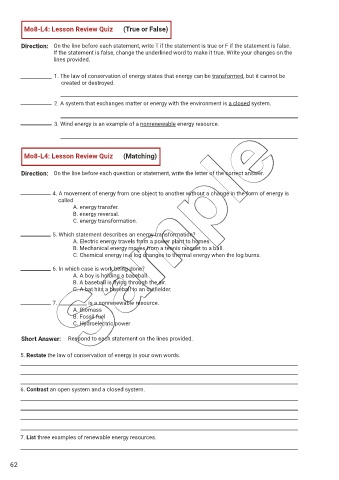 1. The law of conservation of energy states that energy can be transformed, but it cannot be